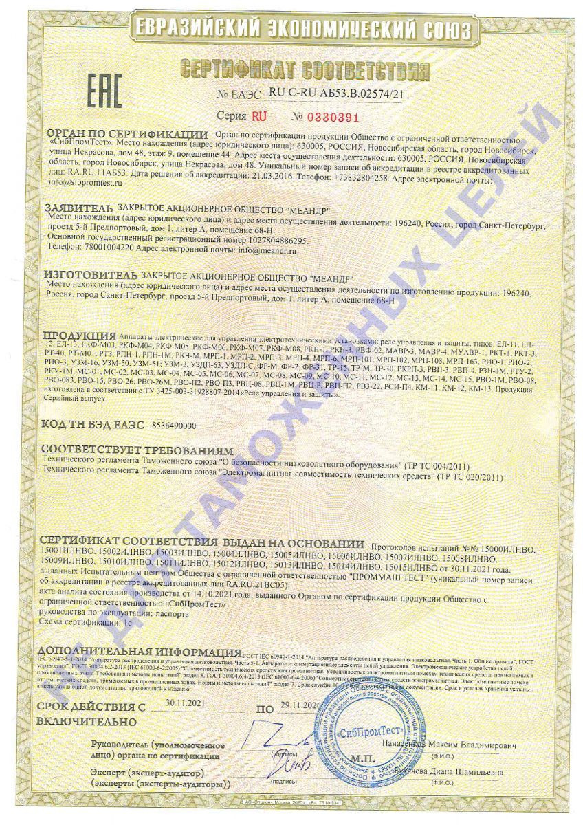 Описание РКН-1МЦ УХЛ2 Меандр